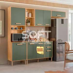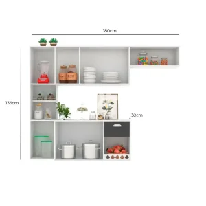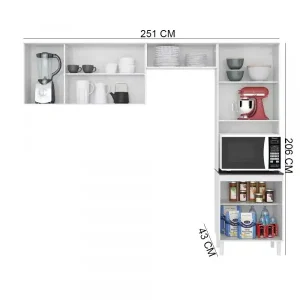 Material: 100% MDF Aéreo com vidro reflecta: sim Porta basculante: sim Nicho e espaço para microondas: sim Dimensões Altura: 257 cm Largura: 210 cm Profundidade: 40 cm
