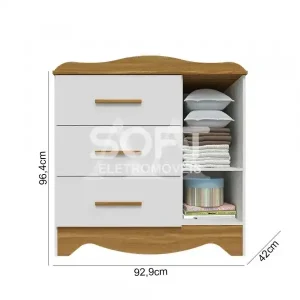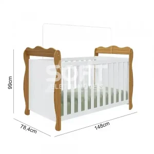 Este móvel comporta colchão de 12 cm de altura (máxima permitida); 70 cm de largura e 130 cm de comprimento. O colchão NÃO ACOMPANHA o berço.