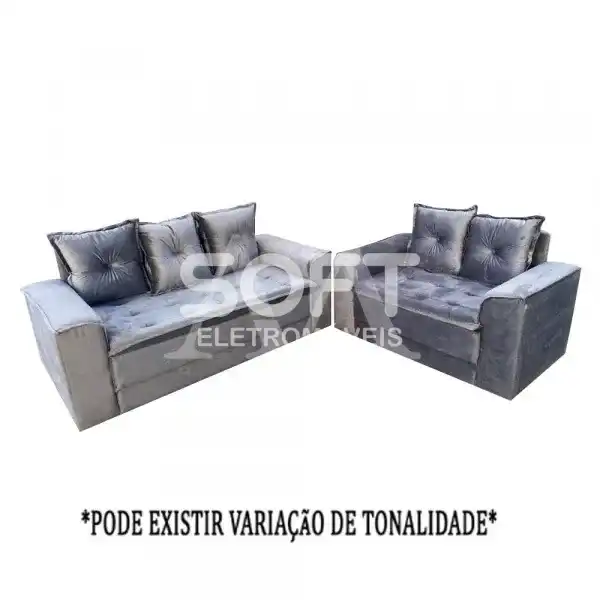 CJ ESTOFADO BOMFLEX 2/3 LUGARES HAITI CINZA VELUDO INCA 10