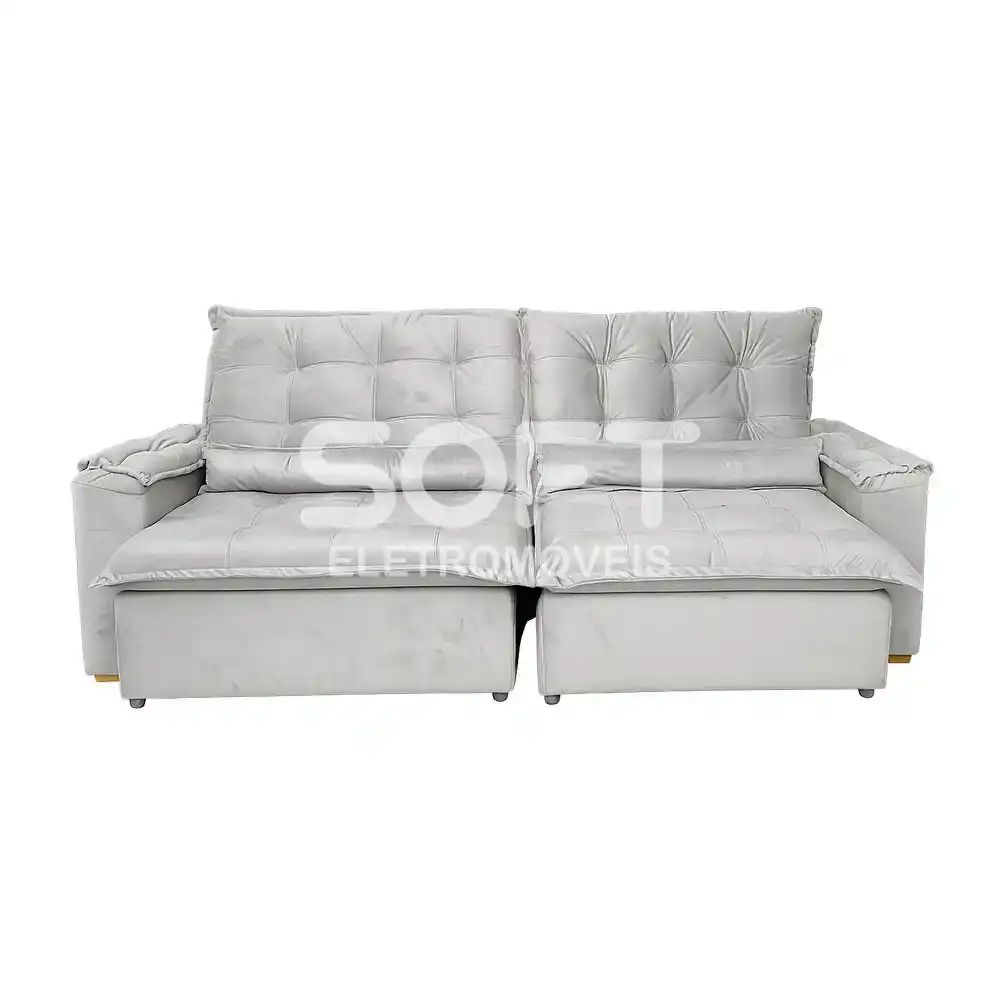 ESTOFADO BOMFLEX GRECIA RETRATIL CINZA CLARO VELUDO