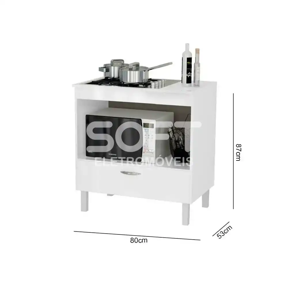 BALCAO DACHERI P/COOKTOP 1G FLORIDA 80CM BRANCO