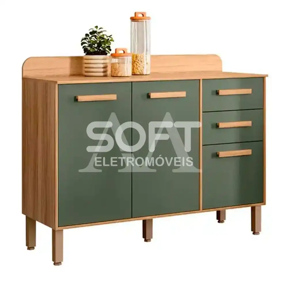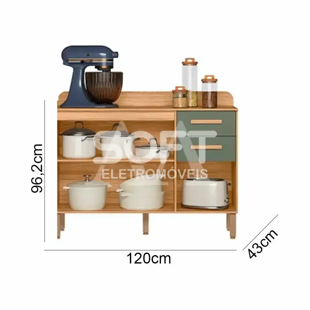 BALCAO NICIOLI 2P 3G MARIA FLOR 120 FREIJO / VERDE