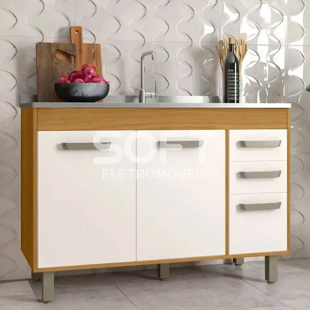 BALCAO POLIMAN 3P 2G MALTA 120CM P/PIA FREIJO/OFF ACETINADO