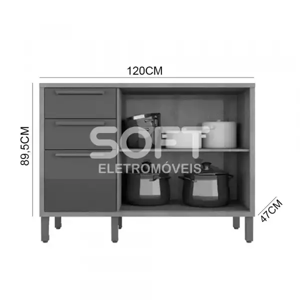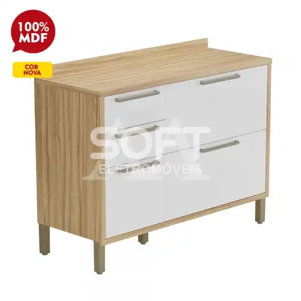 BALCAO RONIPA 2P 3G SYRAH 120CM AMENDOA/BRANCO