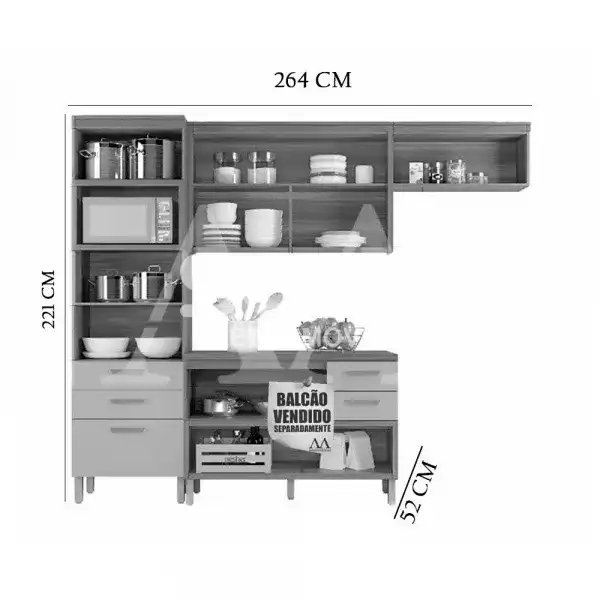 | Dimensões | 52 × 264 × 221 cm |