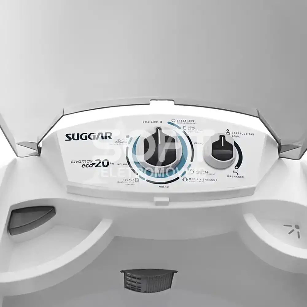 A lavadora lavamax Eco de 20 Kg da Suggar deixa as roupas limpas de verdade.