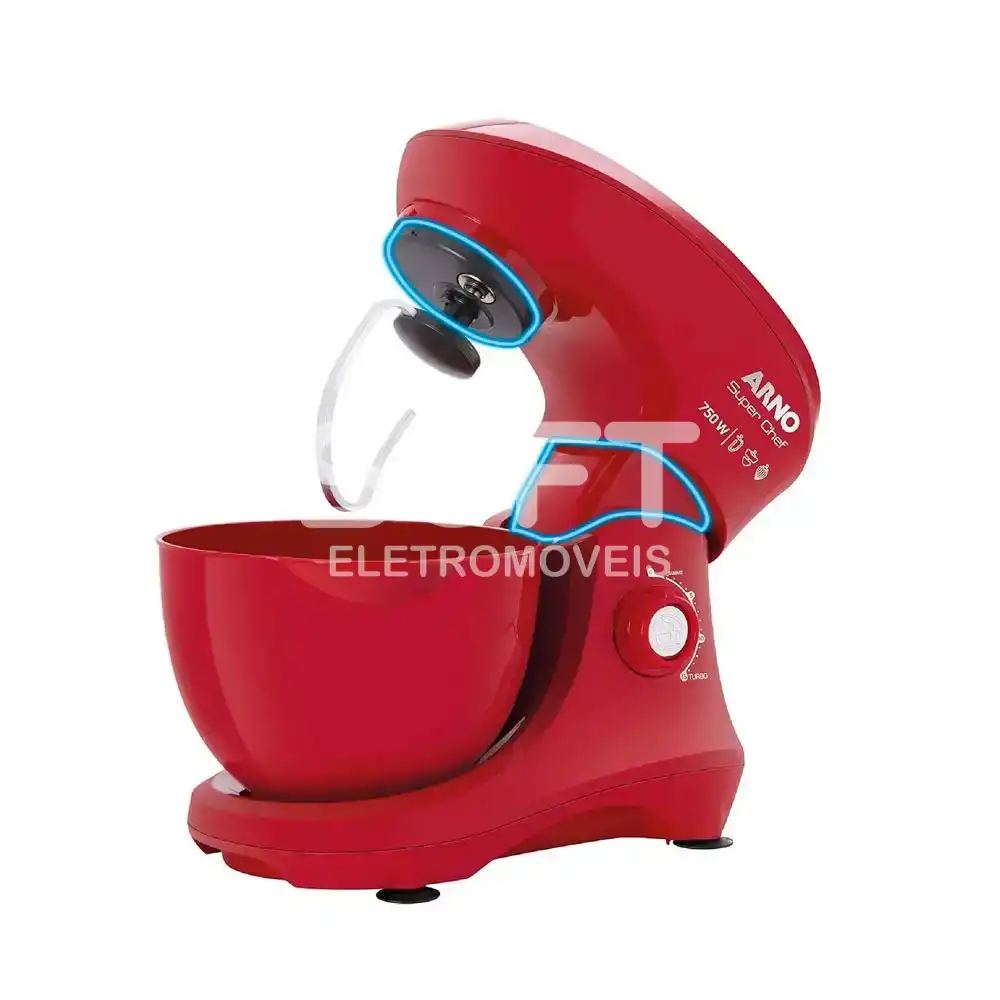 A batedeira Superchef Km02 é a melhor planetária já feita pela Arno. Com alta potência garante resultados perfeitos e mais rápidos. Design exclusivo, botão integrado multivelocidades + trava de abertura, tampa antirrespingo que além de maior praticidade e menos sujeira, possui o bocal exclusivo com maior abertura para facilitar a inclusão de ingredientes. É ainda mais estável na bancada graças ado design da base e fácil de limpar por ter áreas planas que evitam o acúmulo de sujeira.