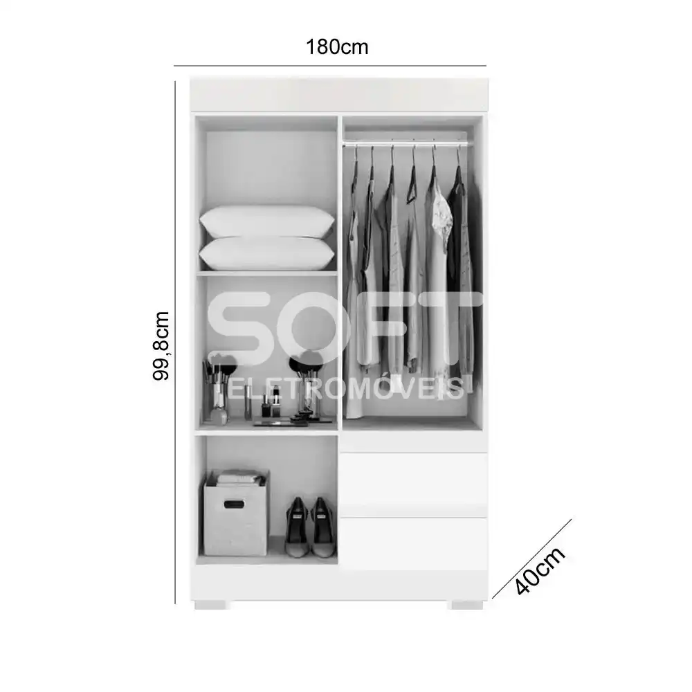 O roupeiro Maya da ACP possui ótima divisão interna, um visual bonito e design moderno vai deixar seu quarto mais charmoso e elegante.
