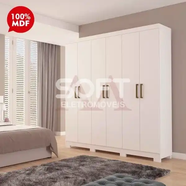 Adicione charme no seu quarto com o roupeiro de seis portas Milena da Panan.