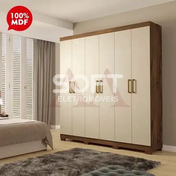 Adicione charme no seu quarto com o roupeiro de seis portas Milena da Panan.