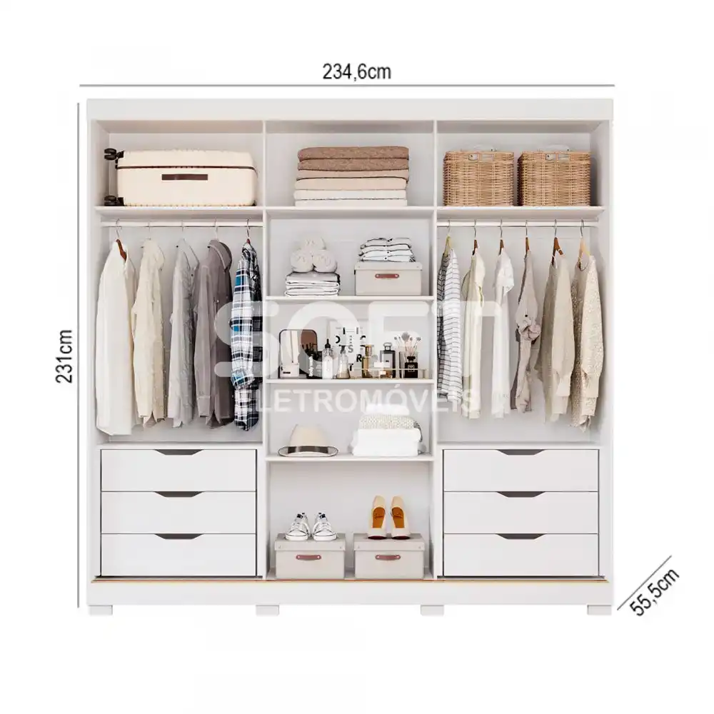 Adicione charme no seu quarto com o roupeiro de seis portas da Cecilia.