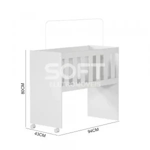 Este móvel comporta colchão de 12 cm de altura (máxima permitida); 70 cm de largura e 130 cm de comprimento. O colchão NÃO ACOMPANHA o berço.
