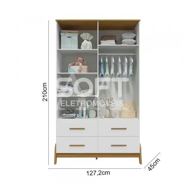 ROUPEIRO 4P. ABRIR 4G PEROBA GUTI RETRO BRANCO BRILHO/AMENDOA