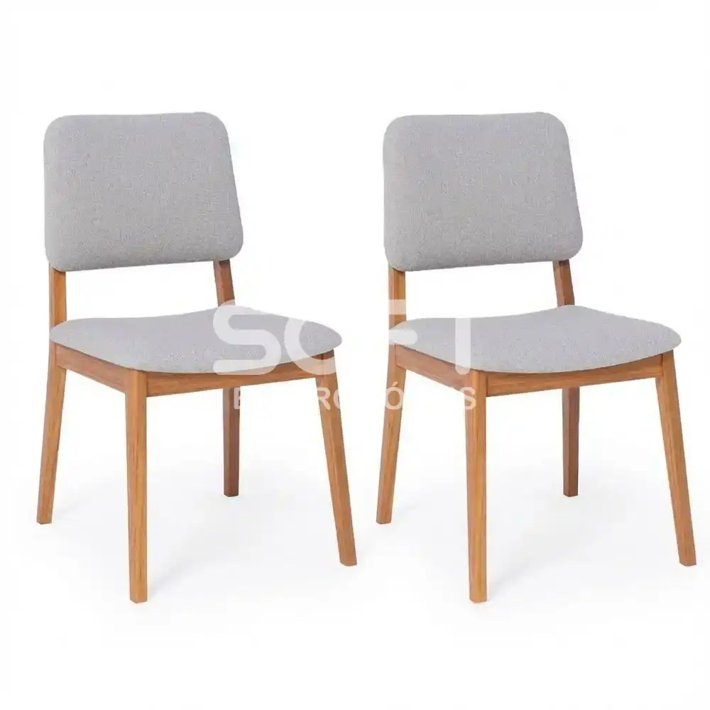 CJ 02 CADEIRAS CIMOL AMARILIS NATUAME MADEIRA/LINHO CINZA