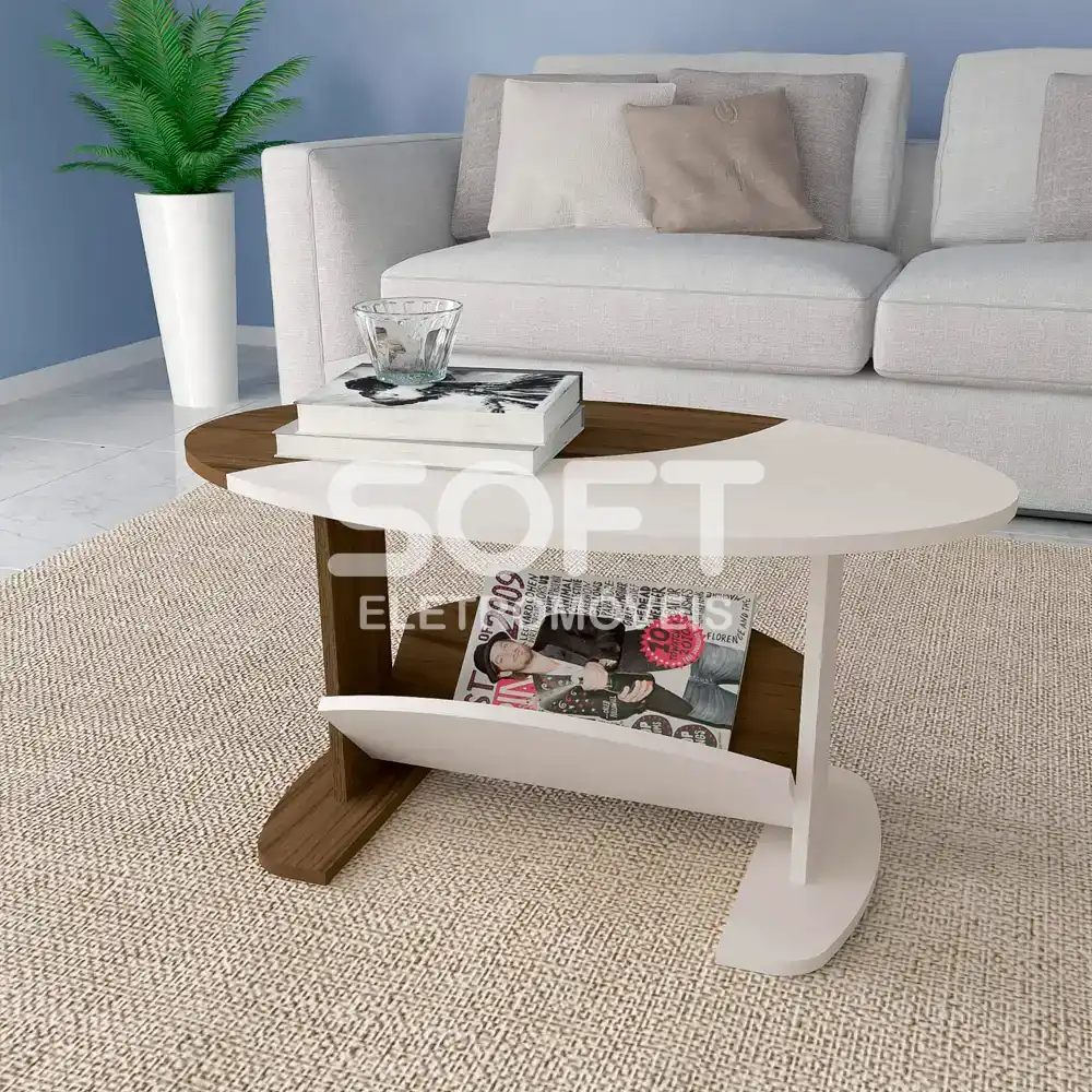 A charmosa mesa de centro Isis, com traços curvos e delicados, vai deixar sua sala com muita beleza e estilo.