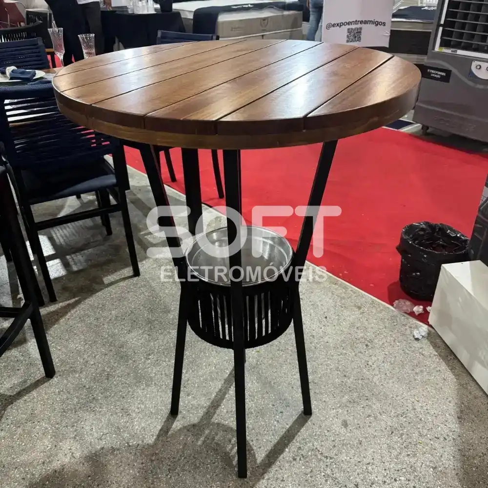 A Mesa Bistrô Bar combina praticidade e estilo para compor varandas, áreas gourmet ou espaços de lazer. Conta com tampo redondo em madeira maciça, estrutura em aço e acabamento de design moderno, que proporcionam resistência e durabilidade. Possui compartimento embutido para gelo, que ajuda a manter as bebidas na temperatura adequada durante o uso. Compacta e funcional, se adapta a diferentes tipos de ambiente, unindo elegância e praticidade.