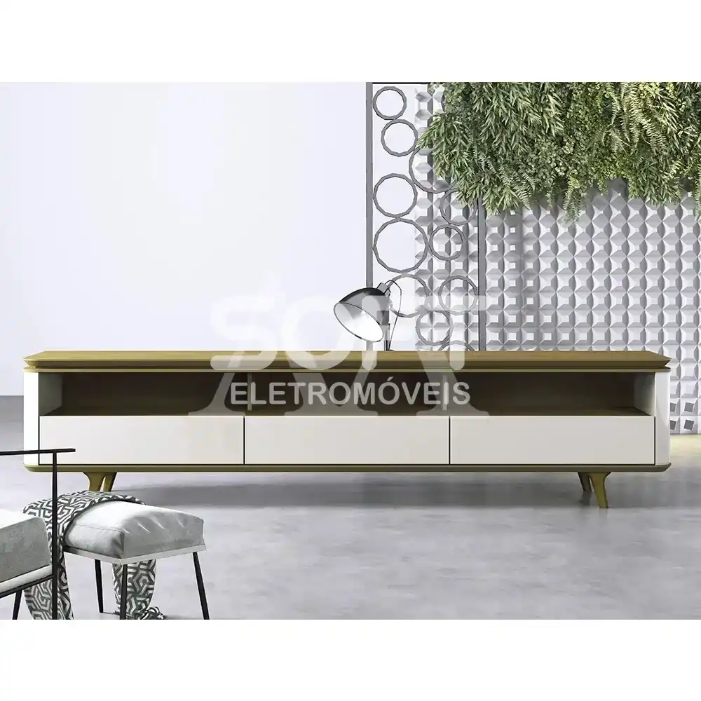 O rack ARC 1.8 com 3 gavetas da Imcal dará muito charme e elegância para a sua sala.