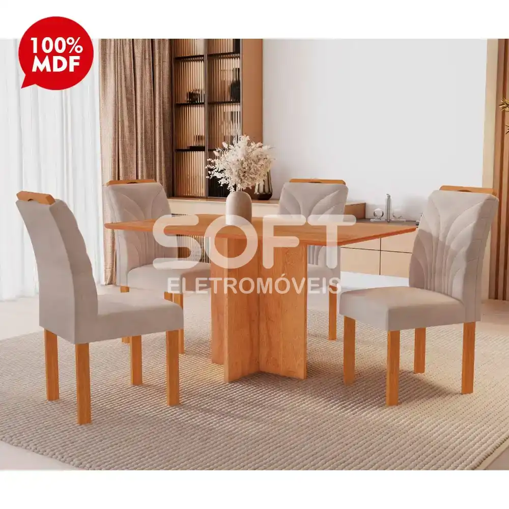 O Conjunto de Mesa Salinas com 4 cadeiras da Cel moveis dará muito charme e elegância para a sua sala.