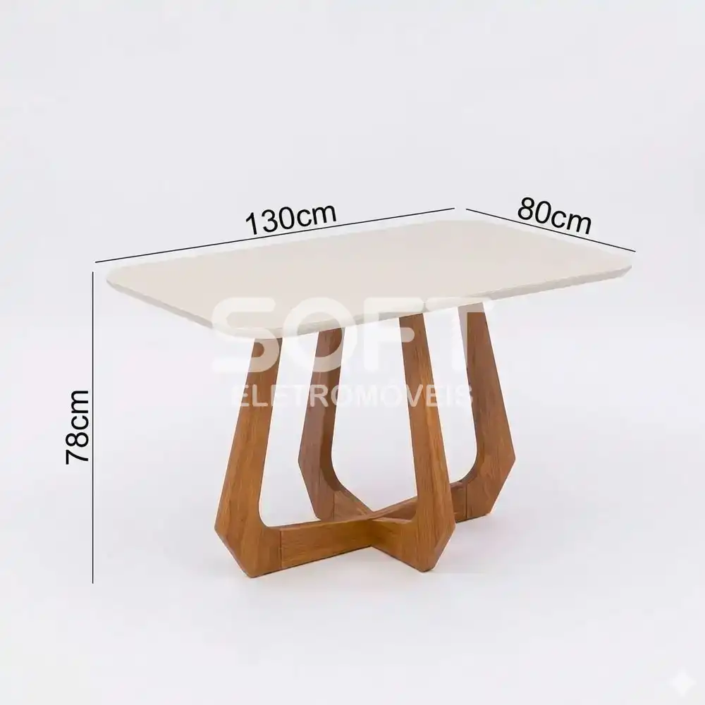 CJ MESA 4C CIMOL BROMELIA RETANGULAR 130X80 AMARILIS MADEIRA/OFF WHITE/LINHO CRU